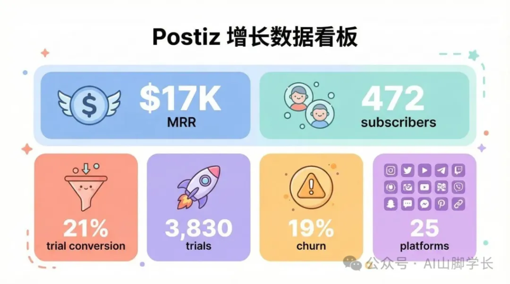 目前数据:472 个付费订阅21% 的试用转化率3830 个试用用户。唯一的痛点是 19% 的流失率,他正在优化这个。