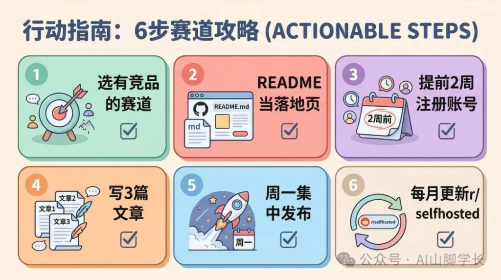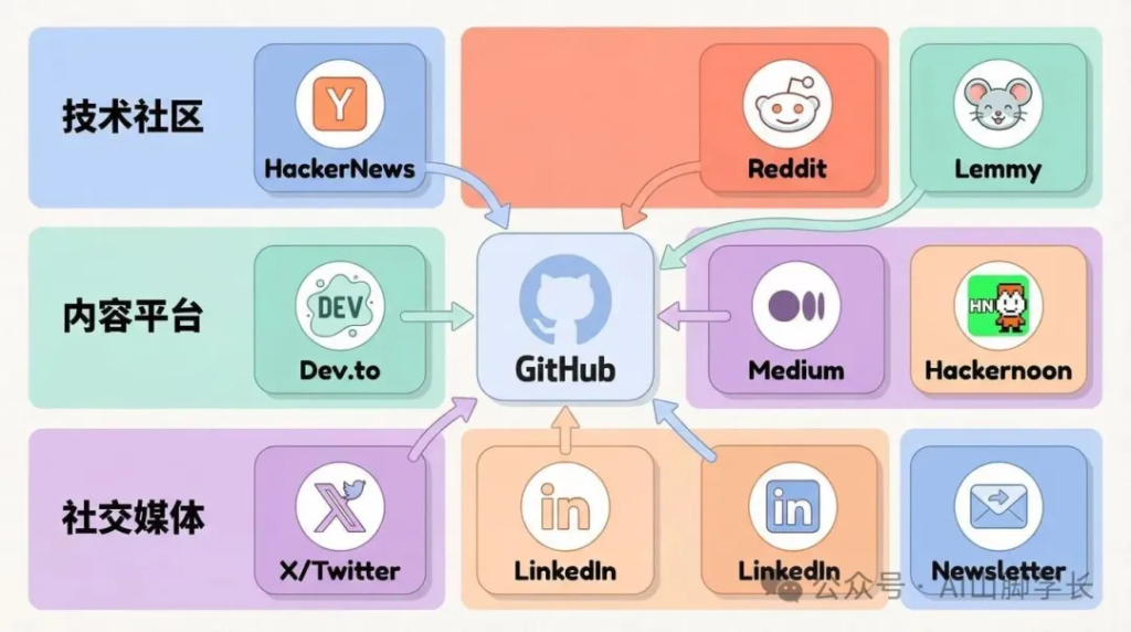 如果你有 X、LinkedIn、Newsletter,全部在同一周发出,把所有流量导向 GitHub。